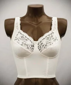 Wykonany z miękkiej dzianiny i koronki. Przedłużony do pasa, co pozwala doskonale utrzymać piersi, wzmacnia kręgosłup i nie krępuje ruchów. Znakomity fason dla pań chcących wymodelować sobie sylwetkę.