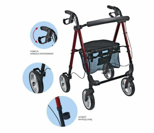 Podpórka rehabilitacyjna 4-kołowa, aluminiowa „PRESTIGE”