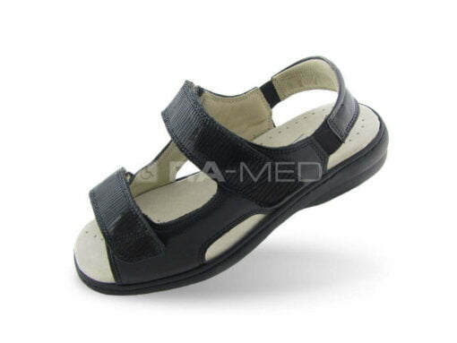 Sandał z regulowanymi zapięciami na rzep. Obuwie wykonane na kopytach o podwyższonej tęgości ( H ).