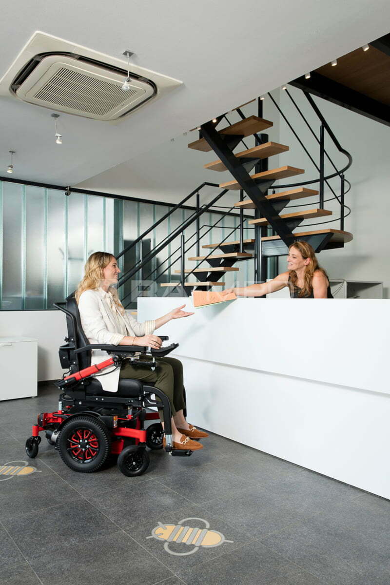 - Niewielkie rozmiary podwozia pozwalają poruszać się swobodnie w wąskich korytarzach i windach.