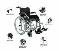 Dzięki praktycznym funkcjom (uchylne podłokietniki, uchylne i odpinane podnóżki z regulacją wysokości) i bardzo solidnemu standardowi wykonania, wózek będzie niezwykle praktyczny i pomocny w życiu codziennym osoby niepełnosprawnej lub osoby mającej problem z narządem ruchu.